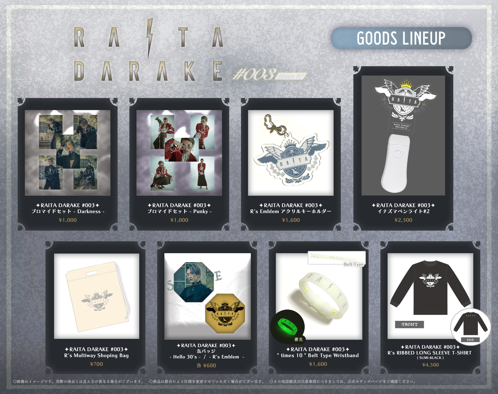 ▼ 「RAITA DARAKE #003 times 10」GOODS LINEUP